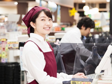 各施設内の食品売場のレジ担当になります。